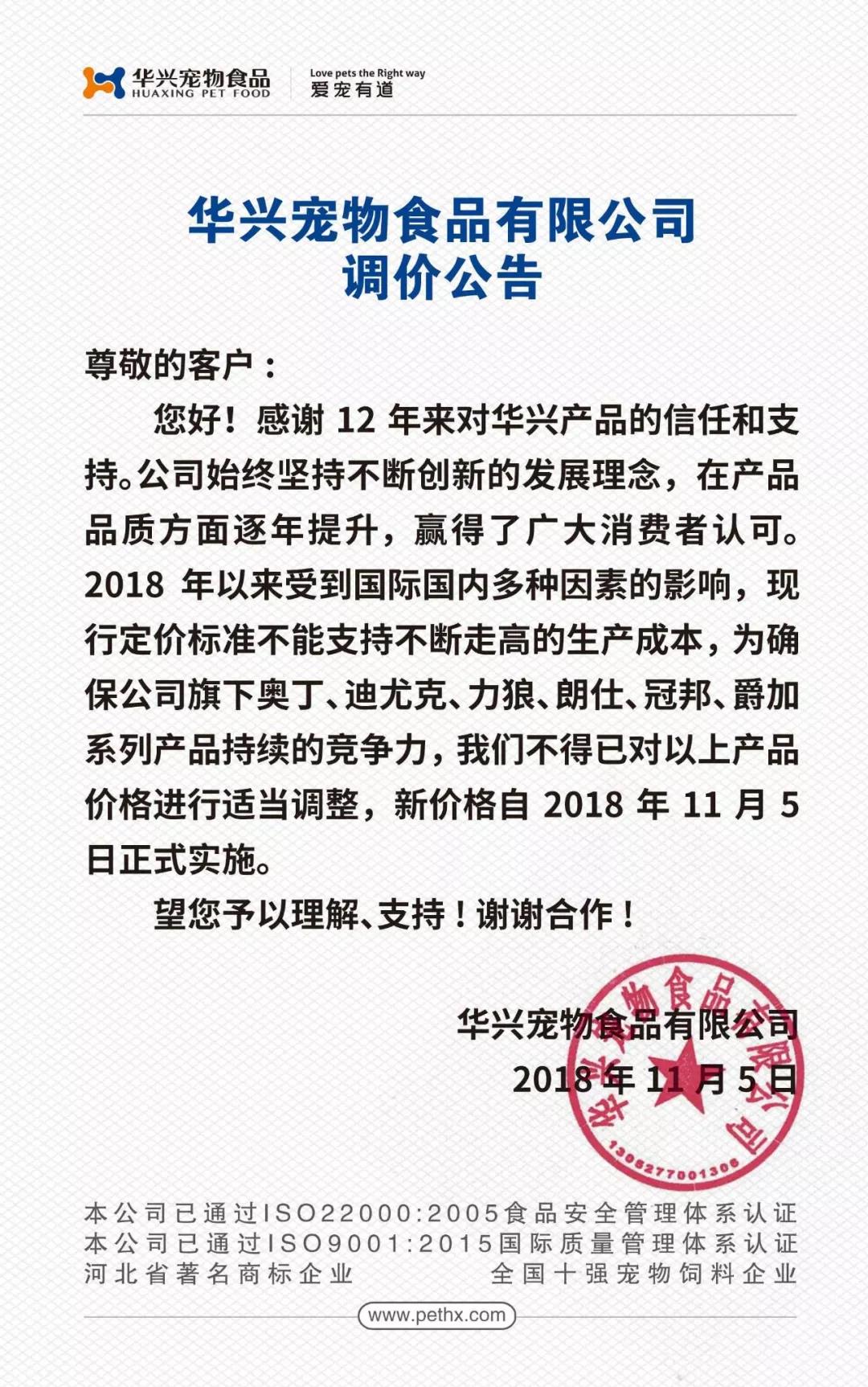 調(diào)價(jià)公告