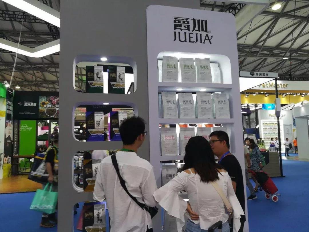 華興寵物食品有限公司的展位N1H51前,迎接著一批批來自全球各地的客戶,熱鬧非凡。